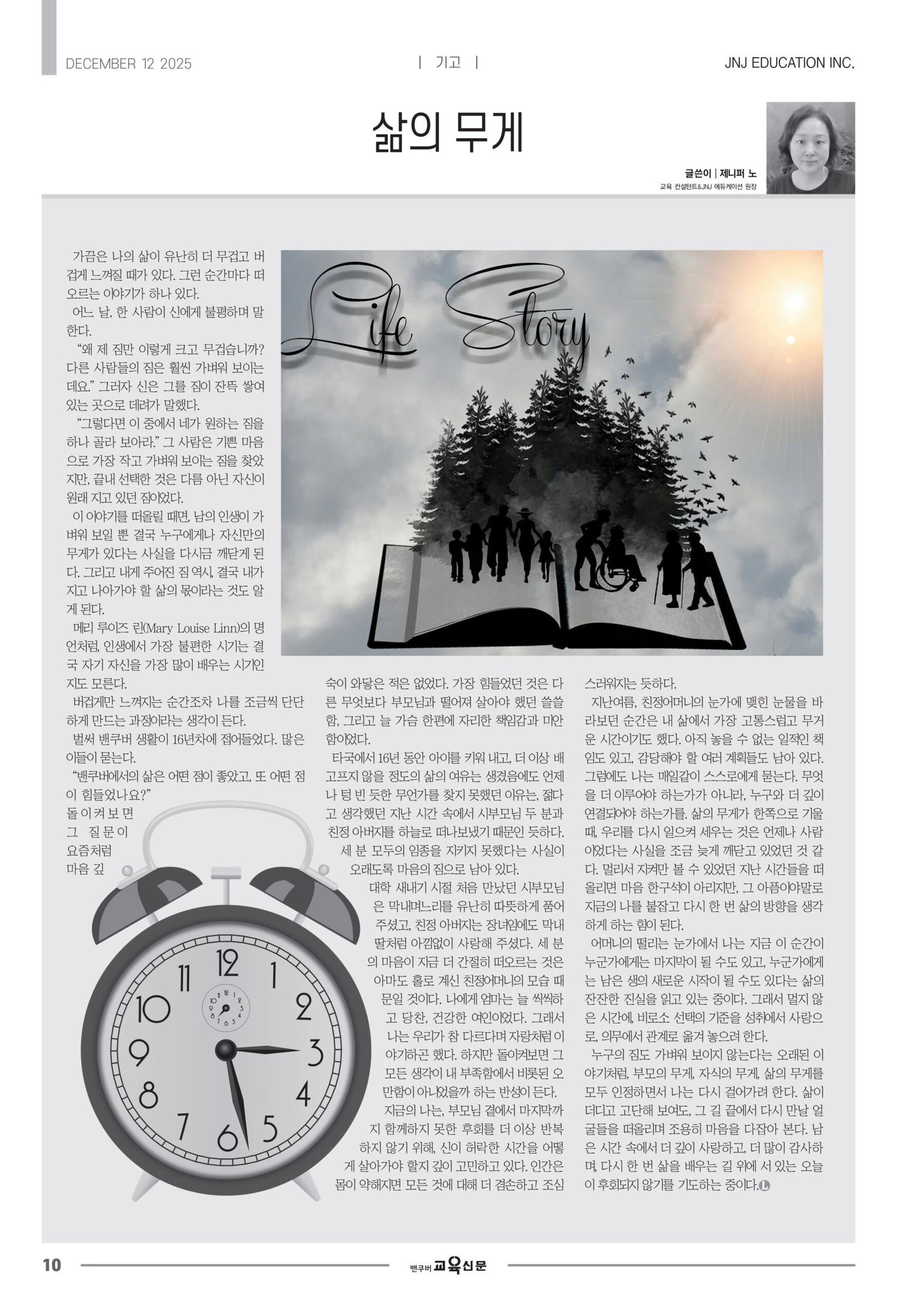 노원장의 JNJ 이런 저런 이야기 삶의 무게 작성일 2025-12-12 09:02 조회 53 좋아요 1 싫어요 0 인쇄 « 꿈 목표 그리고 성공을 위하여 기대층에 기대어 사라지는 나의 판단 » 목록보기 답글쓰기 글수정 글삭제